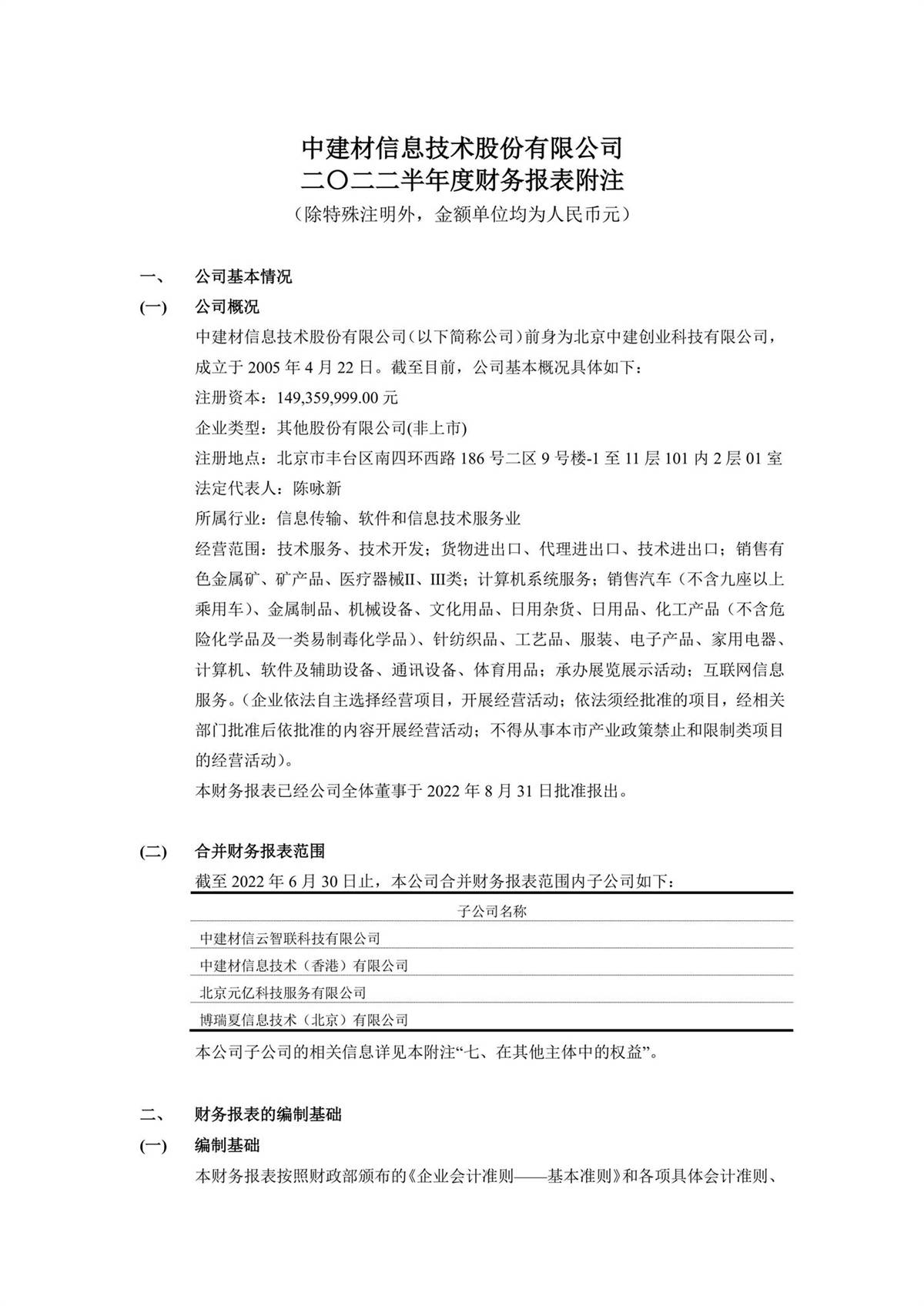 中建信息2022年半年度報(bào)告