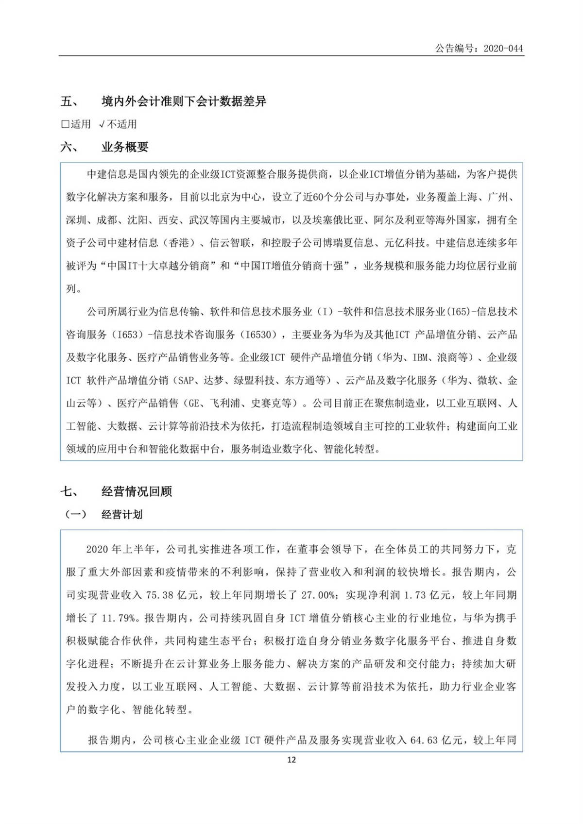 中建信息2020年半年度報(bào)告