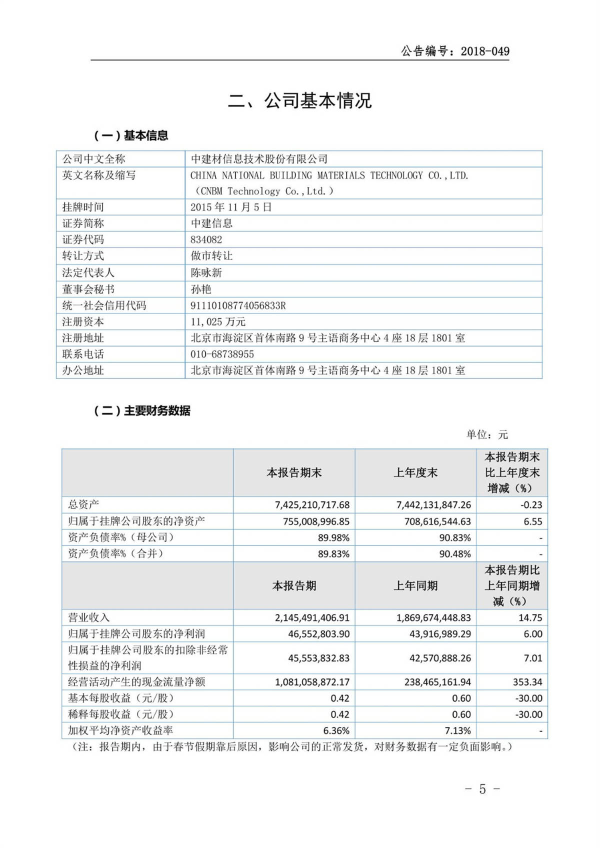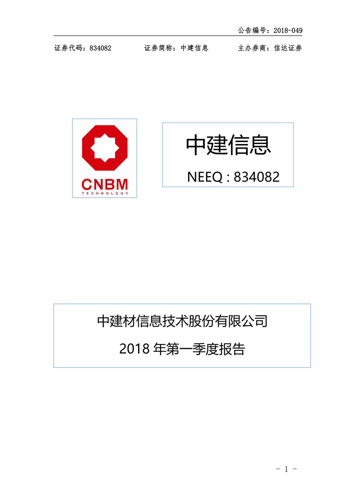 中建信息2018年一季度報告