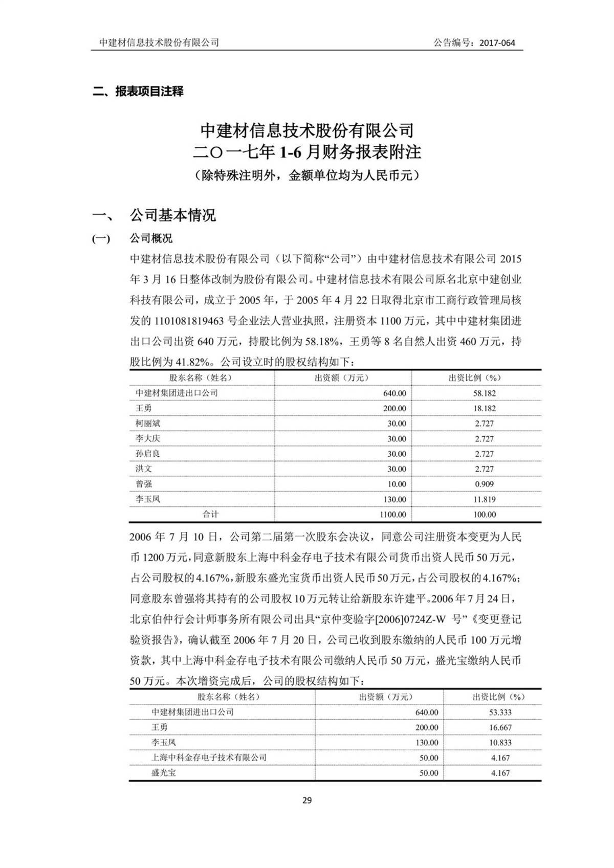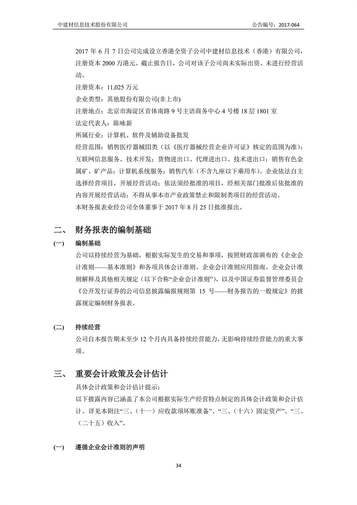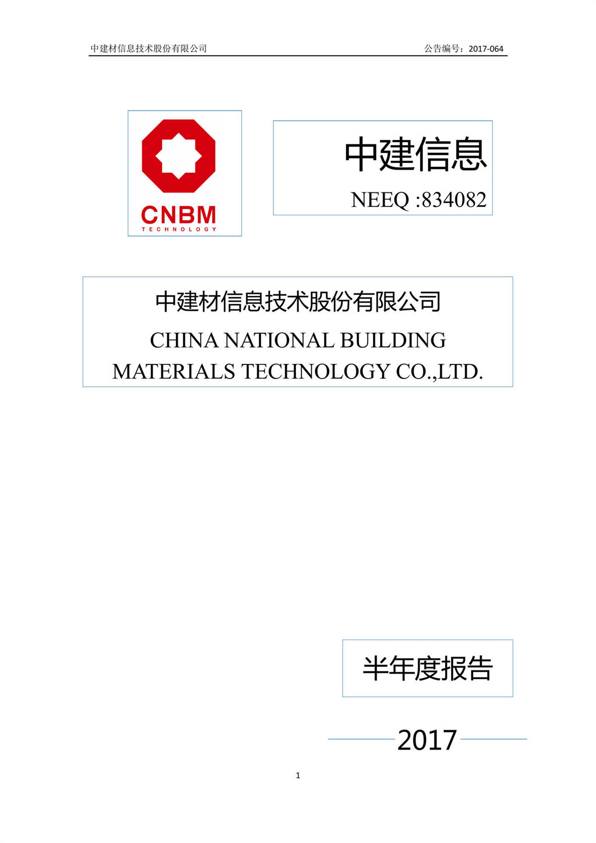 中建信息2017年半年度報告