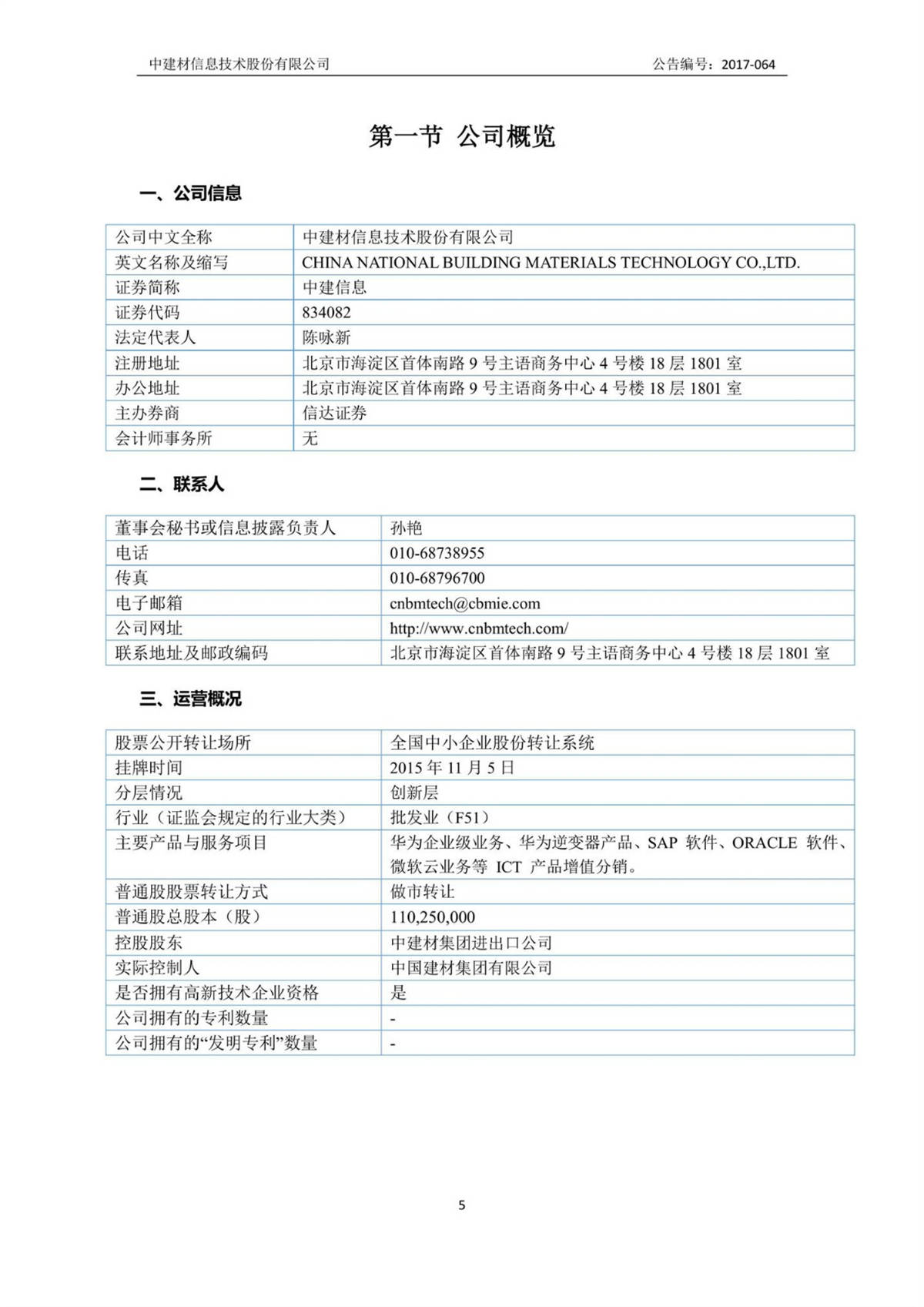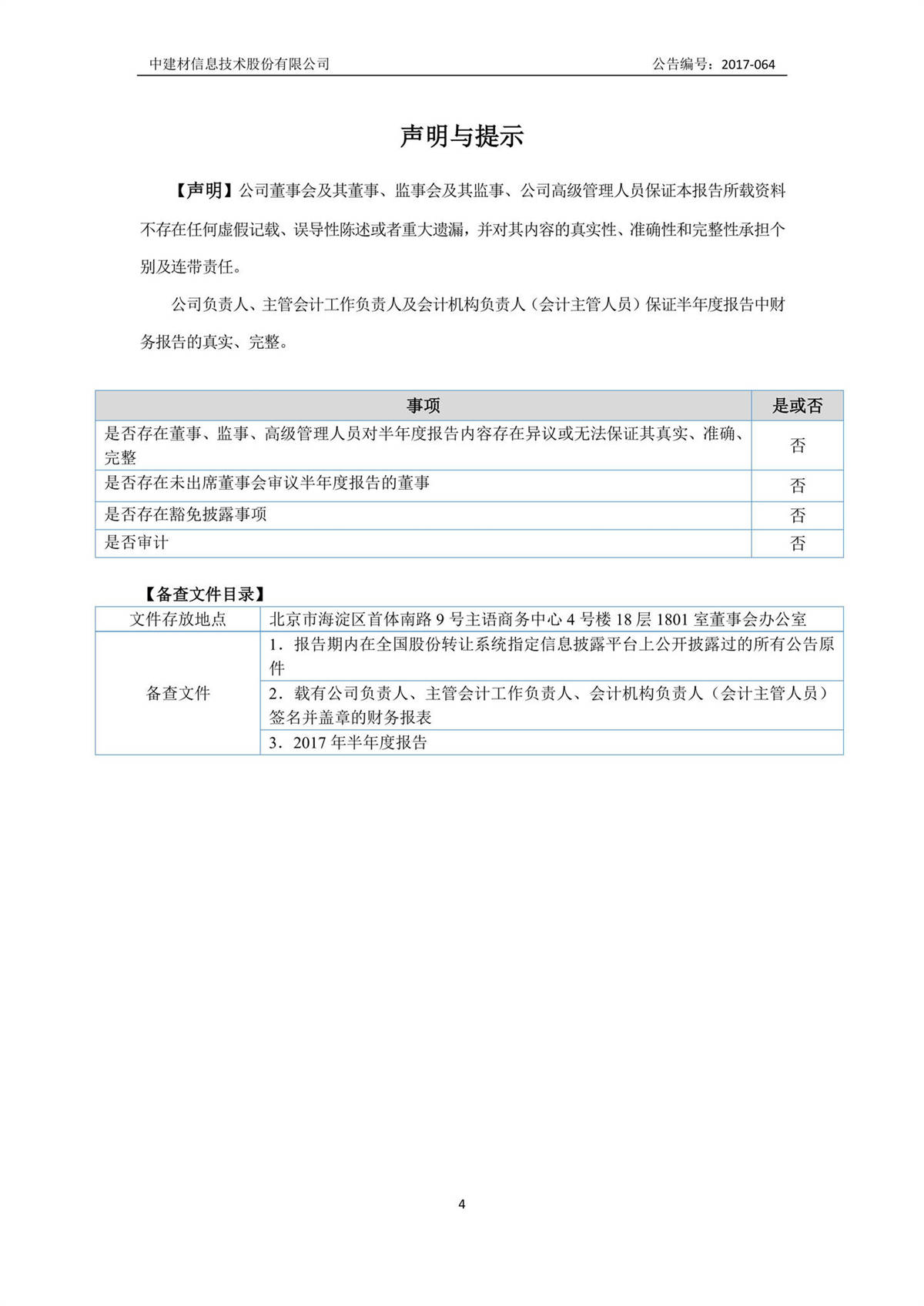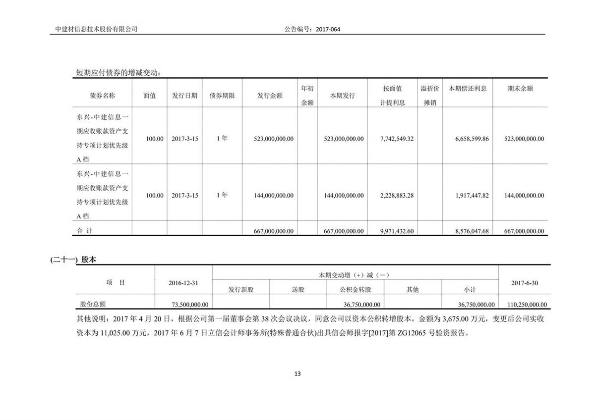 中建信息2017年半年度報告