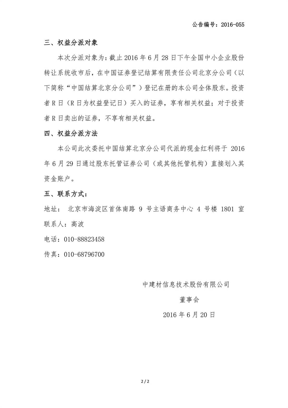 中建信息2015年年度權(quán)益分派實施公告
